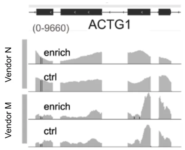 Shown above are read pileups from a housekeeping transcript comparing antibody-enriched and unenriched control libraries. These examples illustrate off-target binding by two widely used m6A antibodies, which bind highly abundant transcripts regardless of their modification status. Although these antibodies generally exhibit higher affinity for m6A, they still bind unmodified RNA at a significant rate. This non-specific binding effectively siphons off reads from truly modified regions, reducing the overall signal-to-noise ratio. The issue is so widespread that dedicated research groups have developed algorithms specifically to calibrate MeRIP data and distinguish genuine modification signals from background noise.9