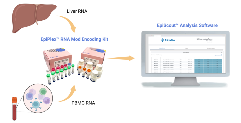 This publicly available dataset was generated using RNA extracted from human peripheral blood mononuclear cells (PBMC) and liver tissue sourced from BioChain Institute Inc. Modification-enriched and RNA-Seq libraries were generated in duplicate for each sample using the EpiPlex Total RNA workflow. The assay detects both N6-methyladenosine (m6A) and inosine in a single run, while also producing high-quality RNA-Seq data from a matched solution control.